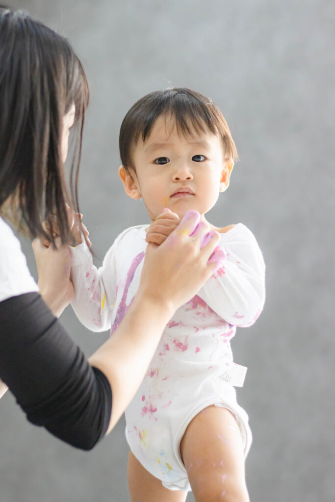 ・手や体についた絵の具はお湯などで簡単に洗い流せます
